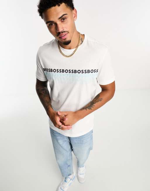 BOSS – Green Tee 2 – T-Shirt in Weiß mit Logo
