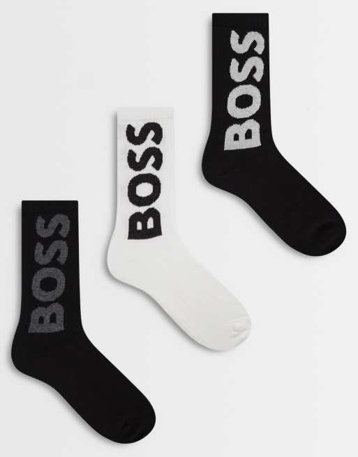 BOSS Bodywear – 3er-Pack sportliche Crew-Socken in Schwarz und Weiß