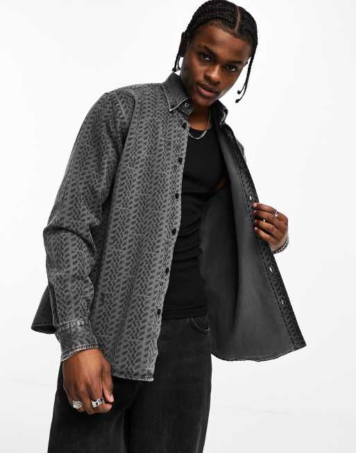 BOSS Orange – Lambey – Lässig geschnittenes Hemd in Dunkelgrau