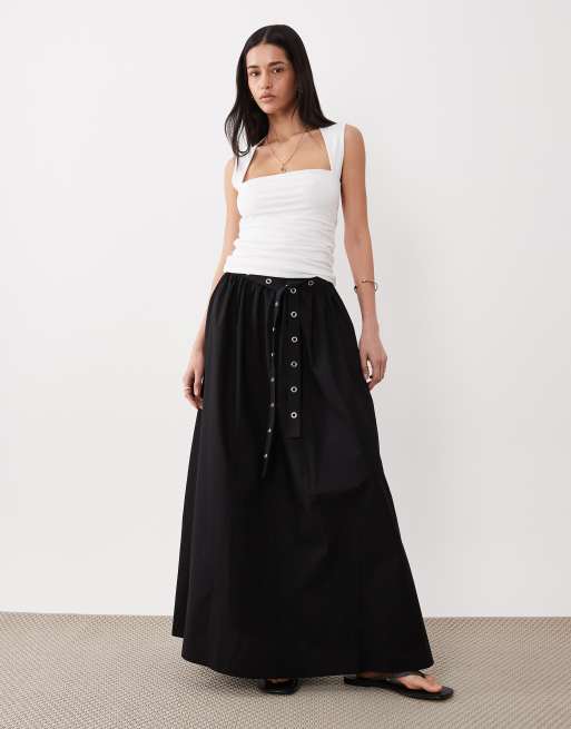 BOSS Orange – Vidol – Maxirock aus Baumwoll-Popeline in Schwarz