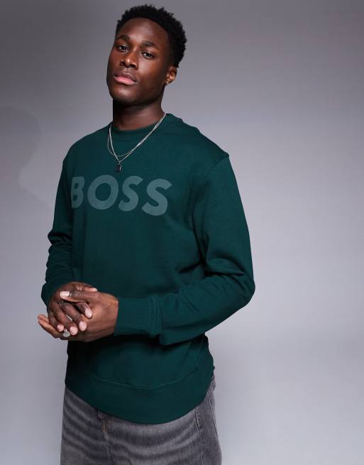 BOSS Orange – WeBasicCrew – Locker geschnittenes Sweatshirt in Dunkelgrün mit großem, farblich abgestimmtem Logo auf Brusthöhe