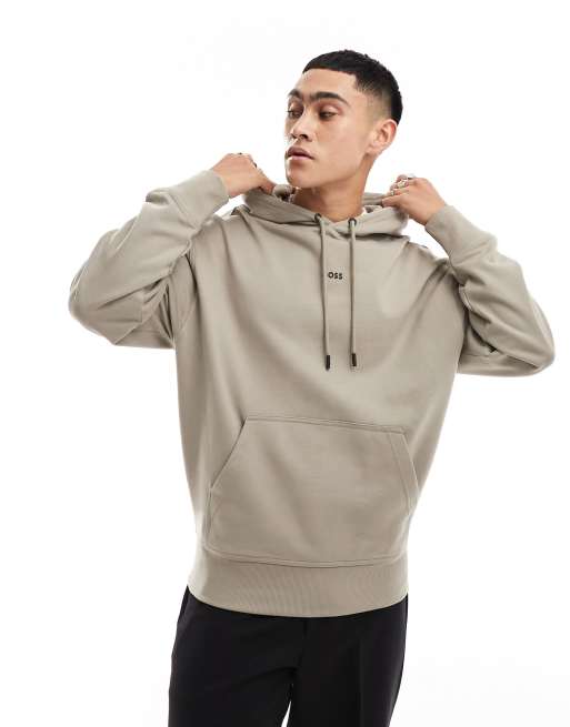 BOSS Orange – Wesmall – Kapuzenpullover in Beige mit Logo