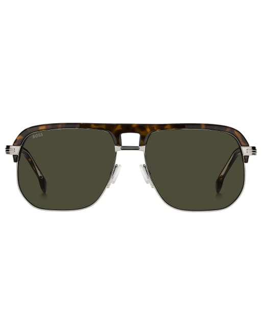 BOSS – Eckige Sonnenbrille in Havana-Silber