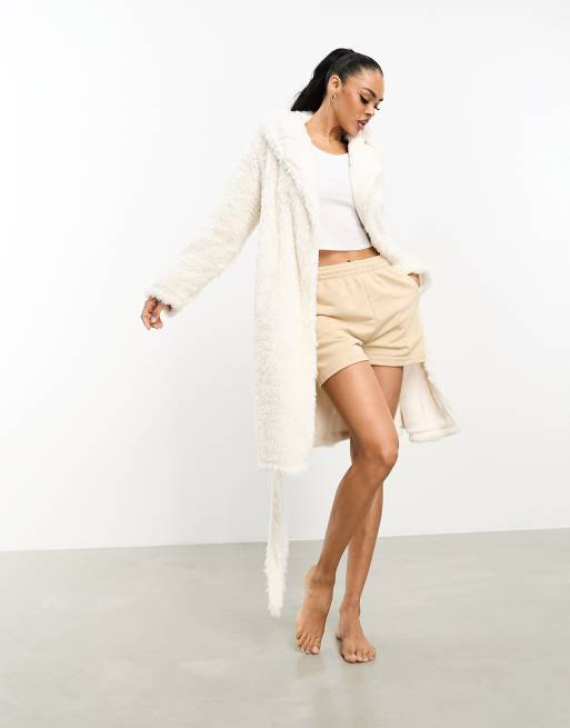 Boux Avenue – Schimmernder Midi-Bademantel in Cremeweiß