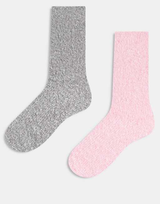 Brave Soul – 2er-Pack flauschige Socken in Rosa und Grau