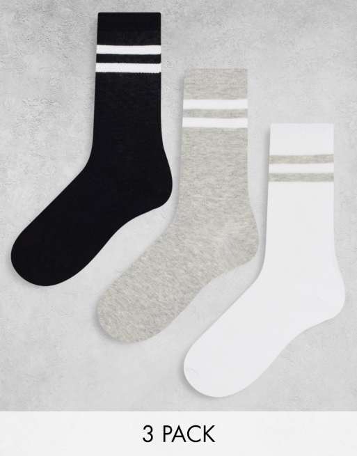 Brave Soul – 3er-Pack Socken aus Baumwolle in Grau und Weiß