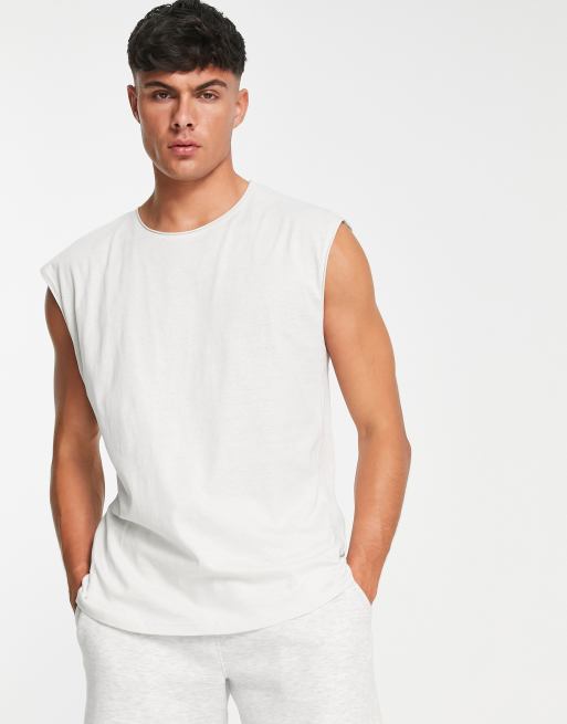 Brave Soul – Ärmelloses T-Shirt in Silbergrau mit unversäuberten Kanten