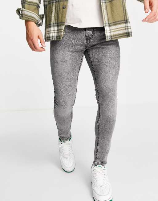 Brave Soul – Eng geschnittene Jeans in Grau mit Acid-Waschung