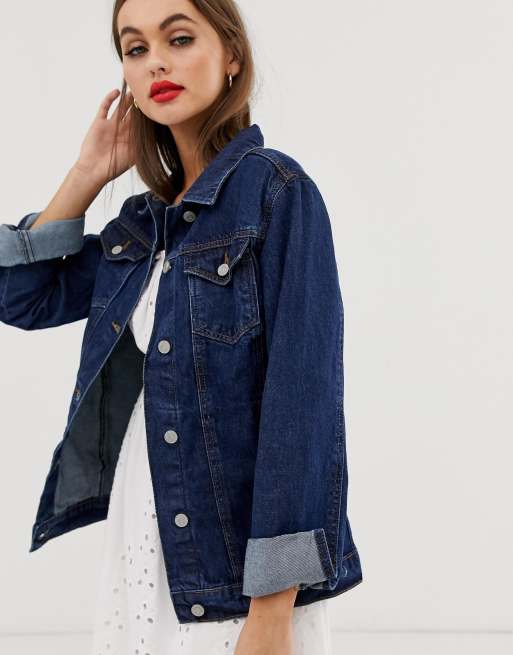 Brave Soul – Fielding – Lange Jeansjacke in dunkler Waschung