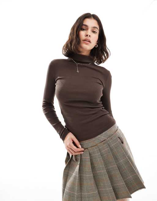 Brave Soul – Geripptes, langärmliges Rollkragenoberteil in Braun