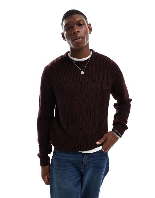 Brave Soul – Grobstrickpullover in Burgunderrot mit Patentmuster
