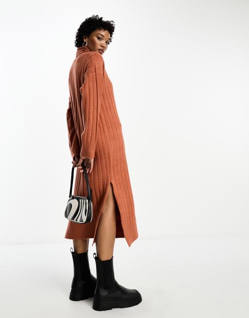 Brave Soul – Hochgeschlossenes, lässig geschnittenes Midaxikleid in Rost