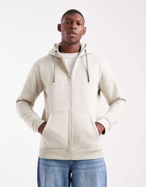 Brave Soul – Kapuzenjacke in Steinbeige mit durchgehendem Reißverschluss und Tunnelzug