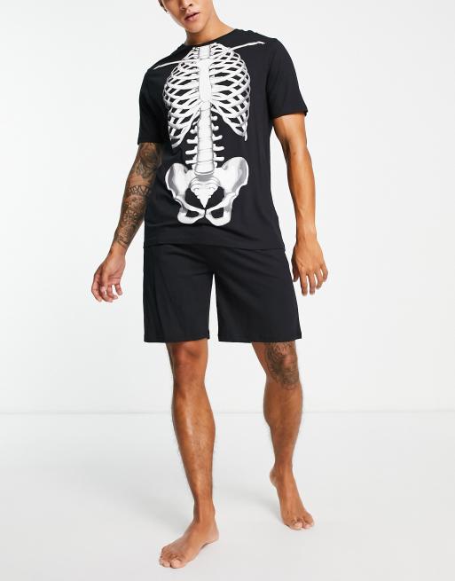 Brave Soul – Kurzer Halloween-Pyjama mit Skelett-Design in Schwarz und Weiß