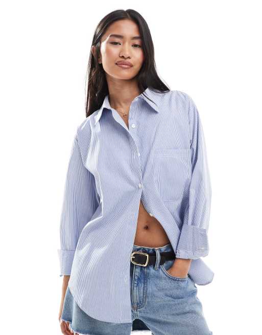 Brave Soul – Legere, gestreifte Hemdbluse in Blau und Weiß