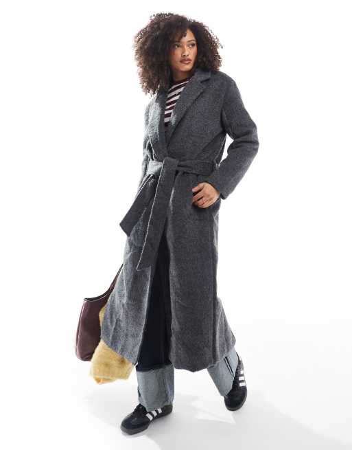 Brave Soul – Mantel in anthrazitgrauer Wolloptik mit Bindegürtel
