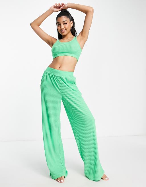 Brave Soul – Nancy – Lounge-Set in leuchtendem Grün, bestehend aus Oberteil mit kurzem Schnitt und eckigem Ausschnitt sowie Hose mit weitem Bein