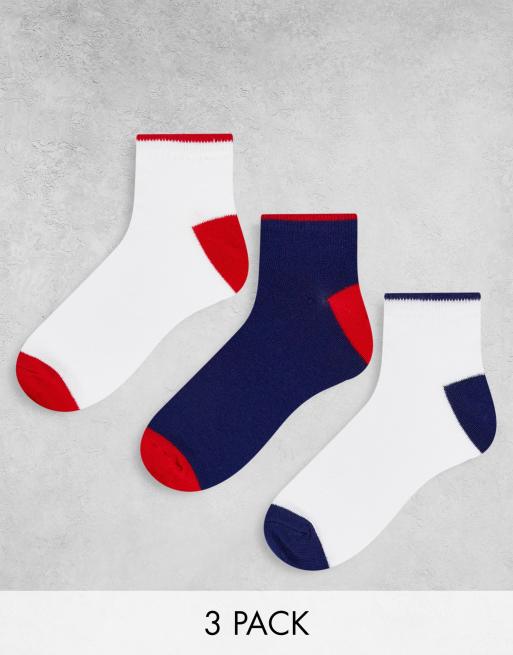 Brave Soul – Paula – 3er-Pack Sneaker-Socken mit Kontrast in Weiß und Navy