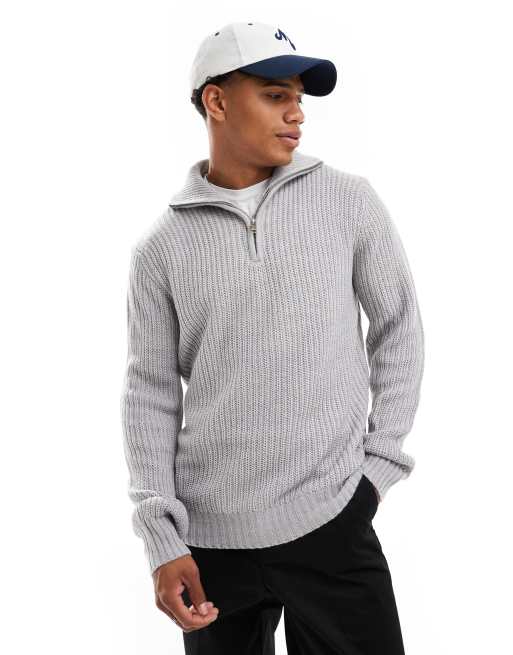Brave Soul – Pullover aus schwerem Material in Hellgrau mit kurzem Reißverschluss