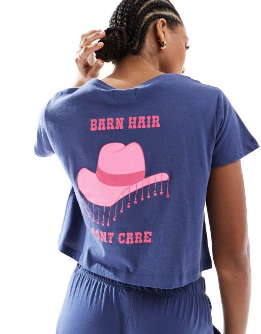 Brave Soul – Pyjama-Set in Marineblau mit rosafarbenem Cowgirl-Print