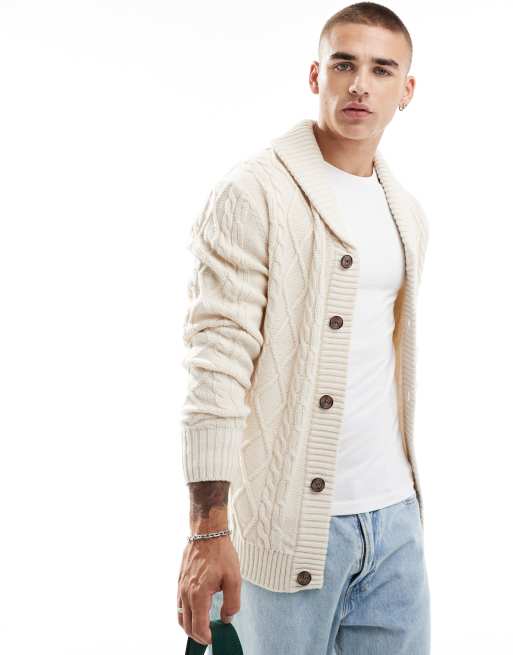 Brave Soul – Schwere Strickjacke mit Zopfmuster in Hellbeige