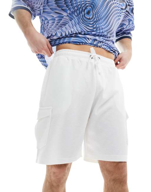 Brave Soul – Schwere, strukturierte Cargoshorts in Weiß, Kombiteil
