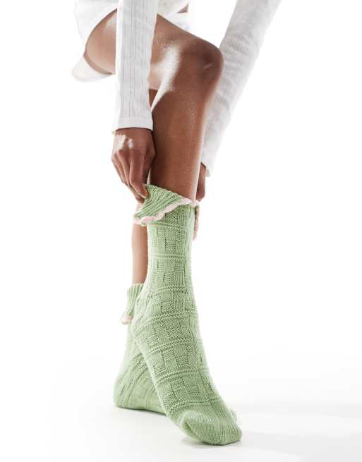 Brave Soul – Socken in Grün mit rosa Rüschenkante