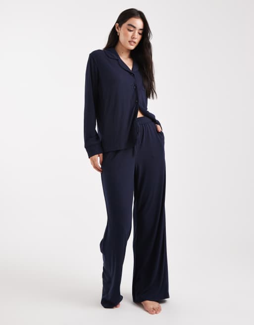 Brave Soul – Superweicher Pyjama in Marineblau, aus geknöpftem Hemd und Hose