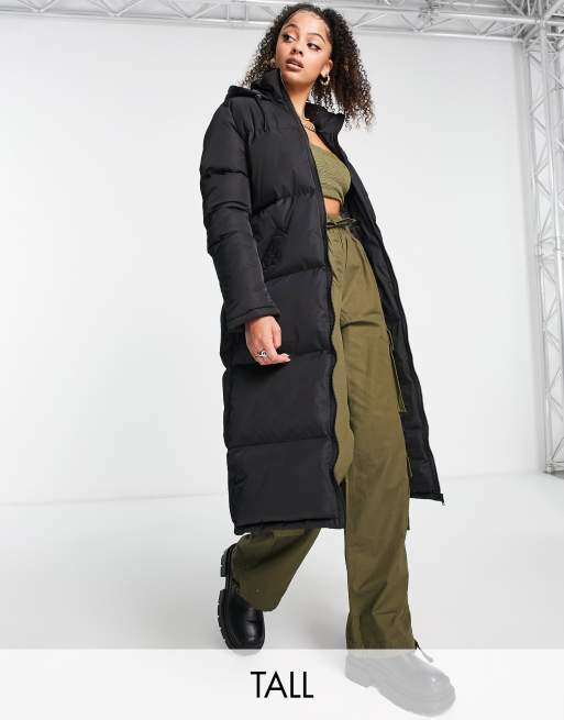 Brave Soul Tall – Cello – Longline-Maxi-Steppjacke in Schwarz