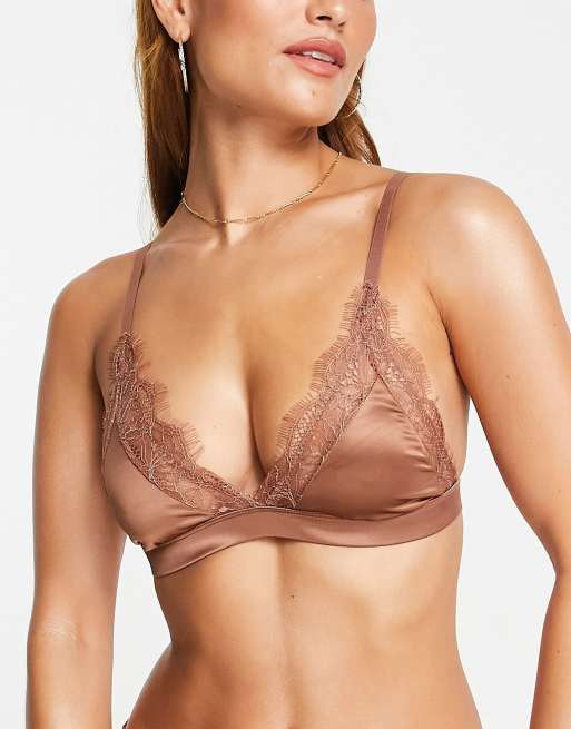 Brave Soul – Triangel-Bustier aus Satin und Spitze in Korkbraun