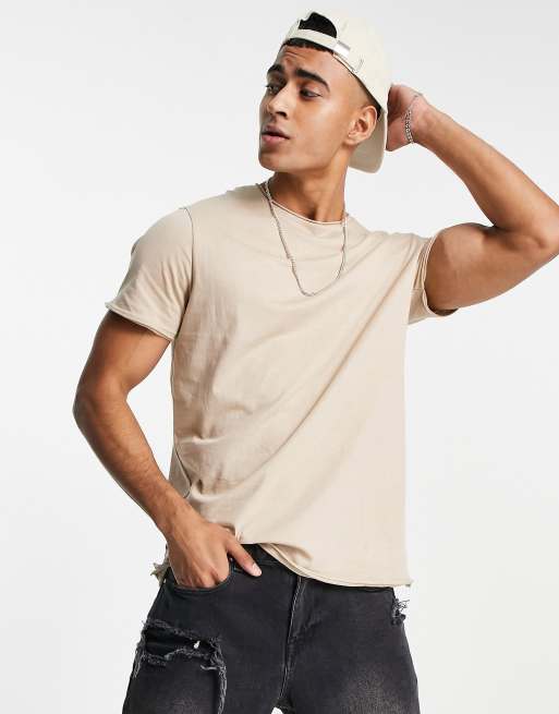 Brave Soul – Ungesäumtes T-Shirt in Stone