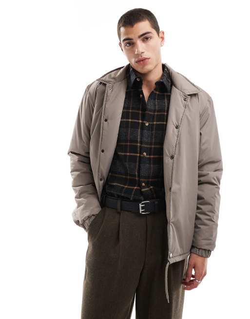 Brave Soul – Wattierte Trainerjacke in Taupe mit Druckknöpfen und Kordelzug am Saum