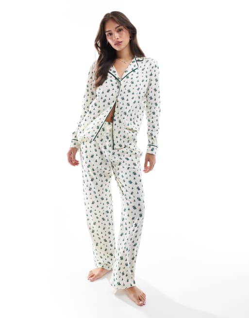 Brave Soul – Weihnachtlicher Pyjama in Weiß und Grün mit Hemd und Hose