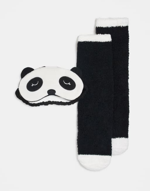 Brave Soul – Witziges Geschenk-Set im Panda-Design in Schwarz und Weiß aus flauschigen Bettsocken und Schlafmaske mit Ohren