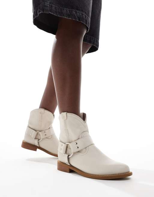 Bronx – Felise – Leder-Stiefeletten in Hafermilch-Weiß mit Riemendetail