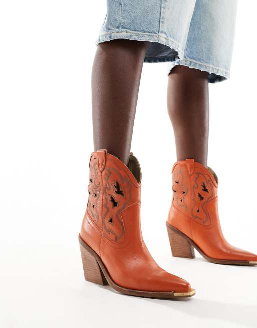 Bronx – New Kole – Western-Ankle-Boots in Terracotta aus Leder mit Absatz