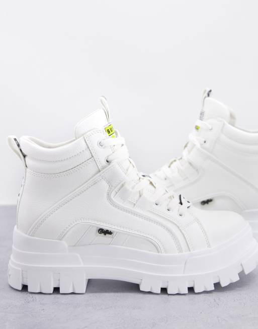 Buffalo – Aspha – Veganfreundiche, knöchelhohe Ankle-Boots mit dicker Sohle in Weiß