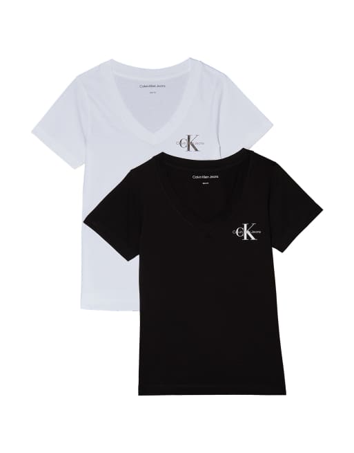 Calvin Klein Jeans – 2er-Pack T-Shirts in CK Black mit V-Ausschnitt