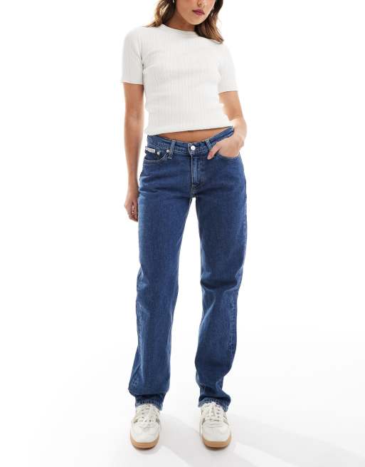 Calvin Klein Jeans – Gerade geschnittene Jeans mit niedrigem Bund in mittlerer Waschung