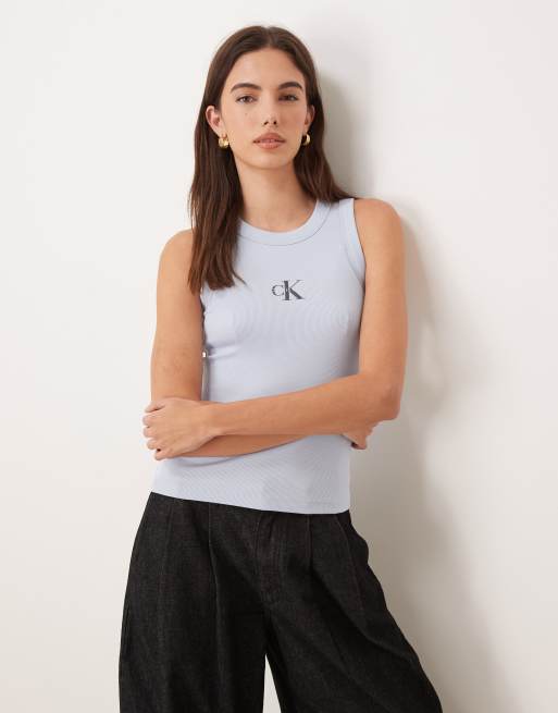 Calvin Klein Jeans – Geripptes Tanktop in Blau mit Monogramm