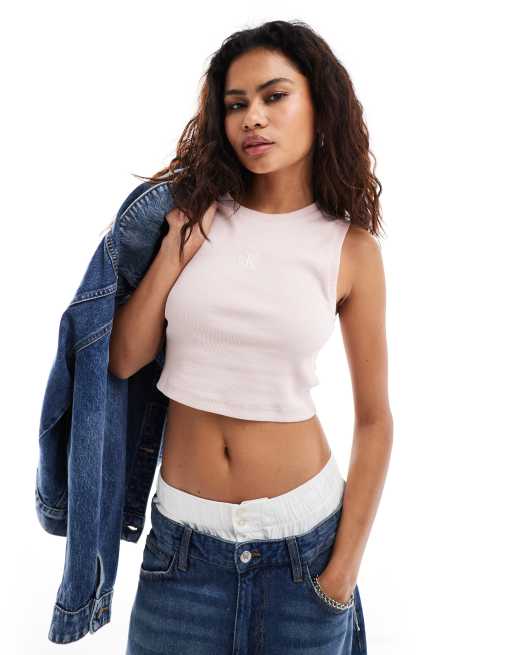 Calvin Klein Jeans – Geripptes Tanktop in Rosa
