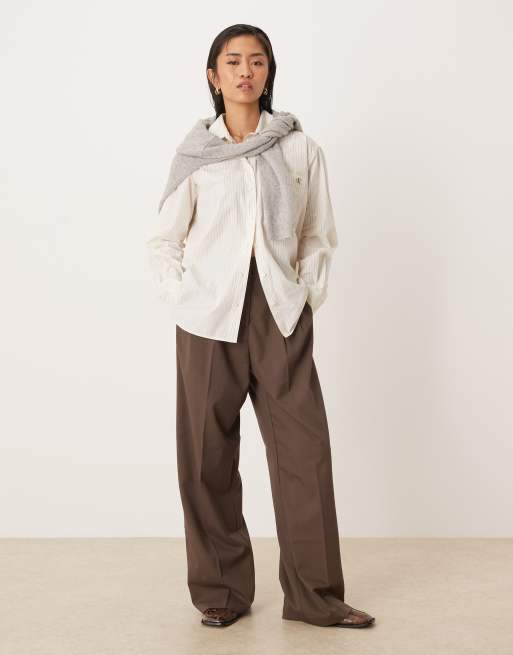 Calvin Klein Jeans – Gestreifte Relaxed-Fit-Hemdbluse aus Baumwoll-Popeline in Natur