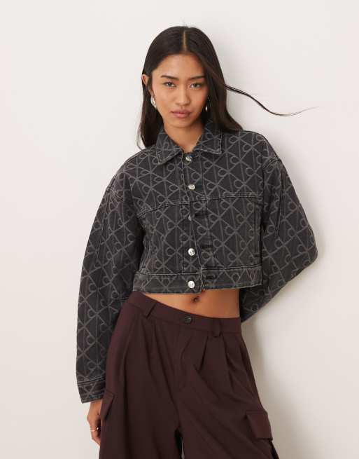 Calvin Klein Jeans – Jeansjacke in Schwarz mit Monogramm-Emblem-Print