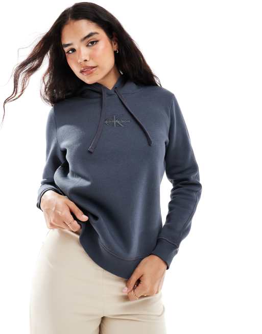 Calvin Klein Jeans – Kapuzenpullover in Marineblau mit Monogramm