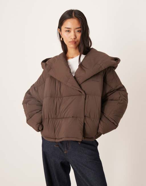 Calvin Klein Jeans – Kastige Oversize-Pufferjacke in Schokobraun