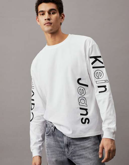 Calvin Klein Jeans – Langärmliges Shirt in strahlendem Weiß mit Logo-Grafikprint