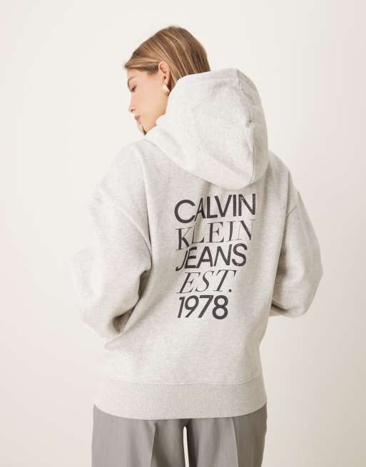 Calvin Klein Jeans – Lässig geschnittener Kapuzenpullover in Grau mit Rückenprint