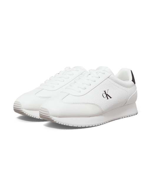 Calvin Klein Jeans – Leder-Sneaker in strahlendem Weiß/CK-Schwarz