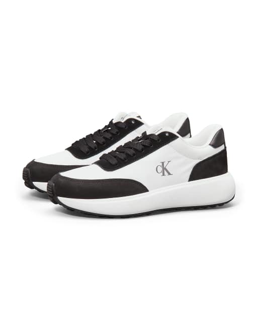 Calvin Klein Jeans – Leder-Sneaker in strahlendem Weiß/Schwarz