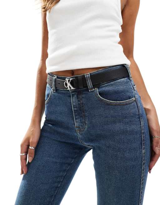Calvin Klein Jeans – Ledergürtel in Schwarz mit Monogramm-Emblem, 25 mm